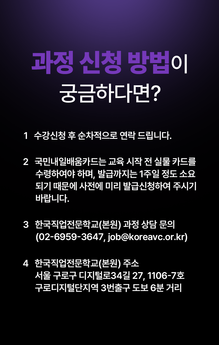 - 교육 이수 후에도 6개월까지 취업커리어 지원