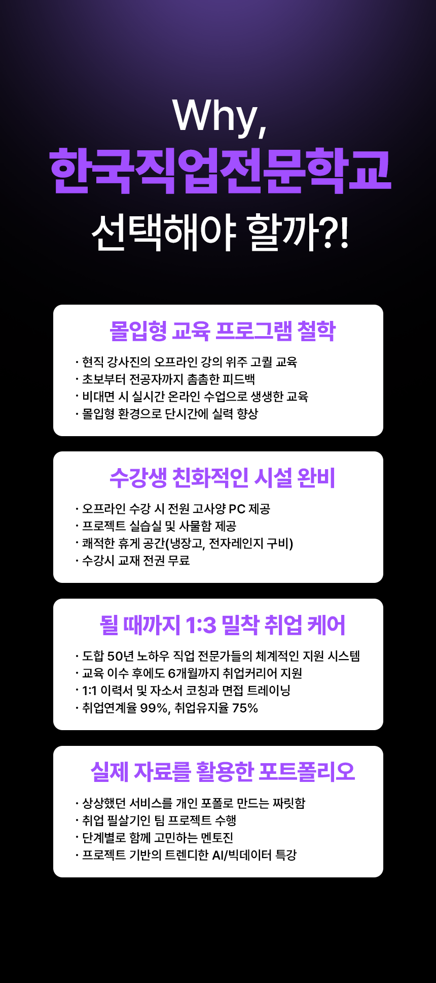 - 취업연계율 99%, 취업유지율 75%