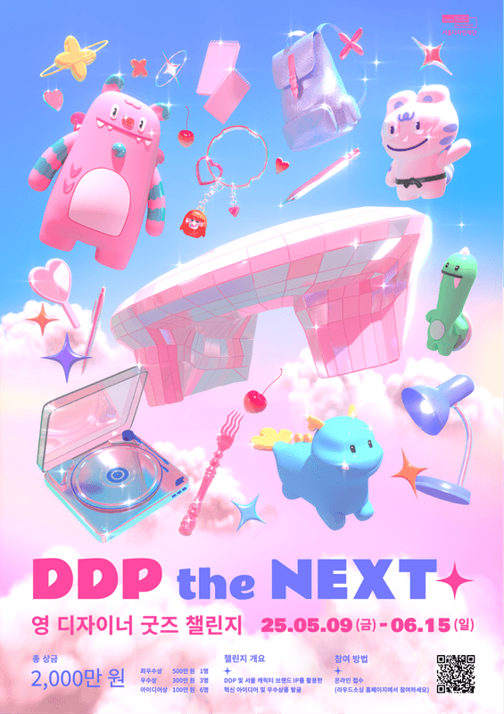 DDP 및 서울 캐릭터 브랜드 IP를 활용한 혁신 아이디어 및 우수 상품 발굴 하고, 신진 디자이너들이 안정적으로 성장할 수 있는 비즈니스 역량 기반 마련하기 위해 DDP the NEXT : 영디자이너 굿즈 챌린지를 개최 합니다.