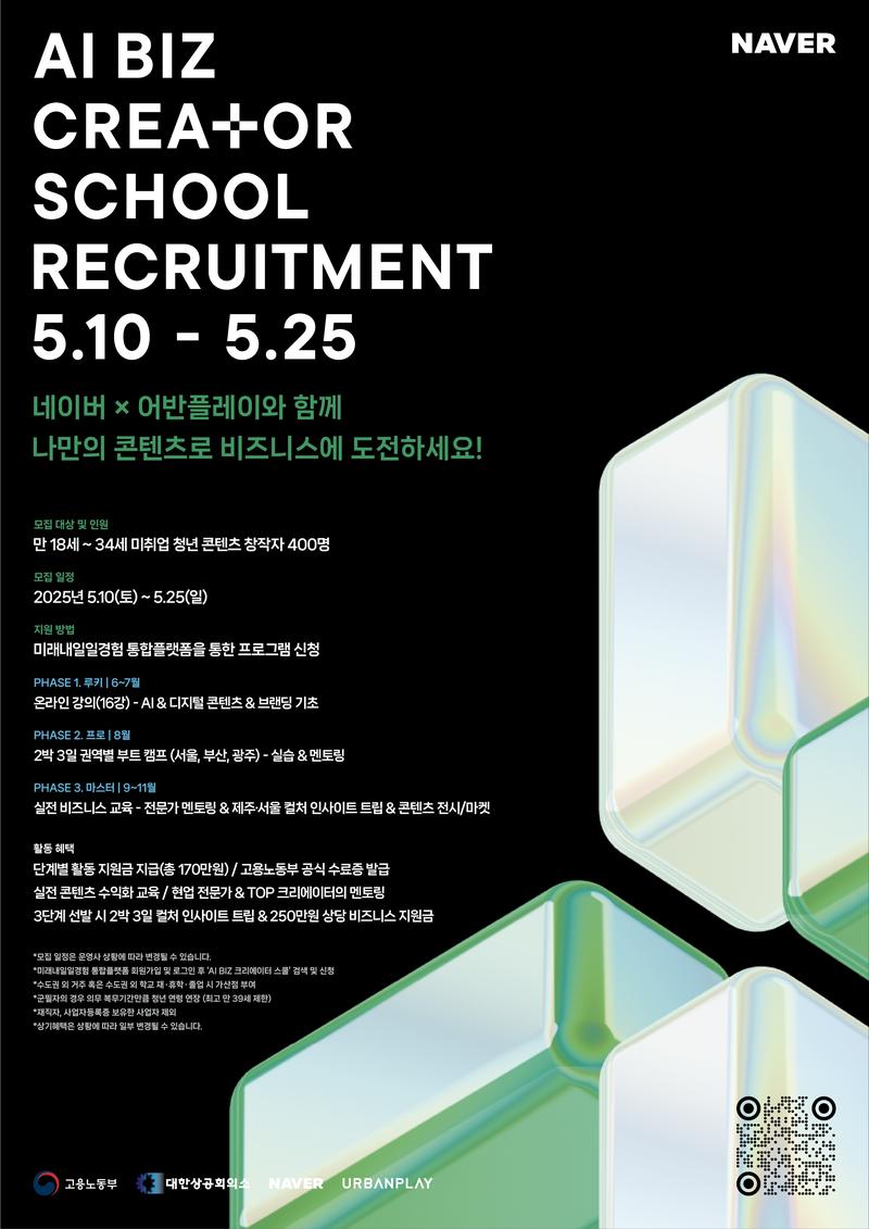 네이버와 어반플레이가 함께하는 AI BIZ CREATOR SCHOOL은 자신만의 브랜드와 콘텐츠로 AI기술 기반의 콘텐츠를 제작하고, 이를 비즈니스 영역까지 확장할 수 있도록 지원하는 교육 프로그램입니다.