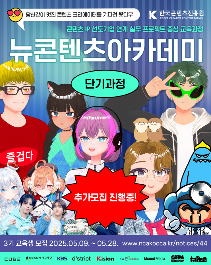 2025 뉴콘텐츠아카데미 단기 교육과정 3기 교육생을 추가모집합니다.