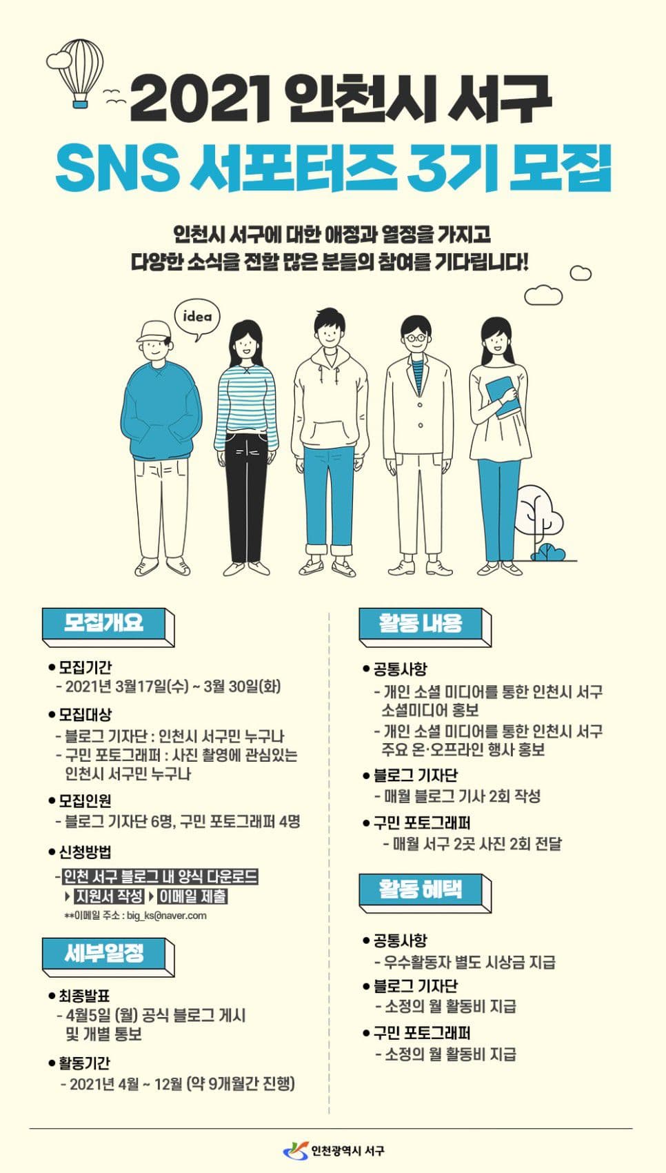 2021년 인천시 서구 SNS 서포터즈 3기 모집