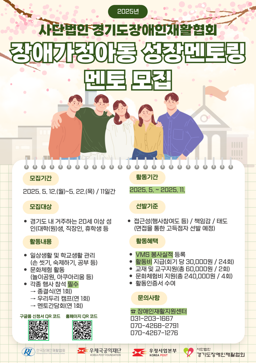 성장멘토링은 우정사업본부, 우체국공익재단, 한국장애인재활협회가 함께하는 사업입니다.