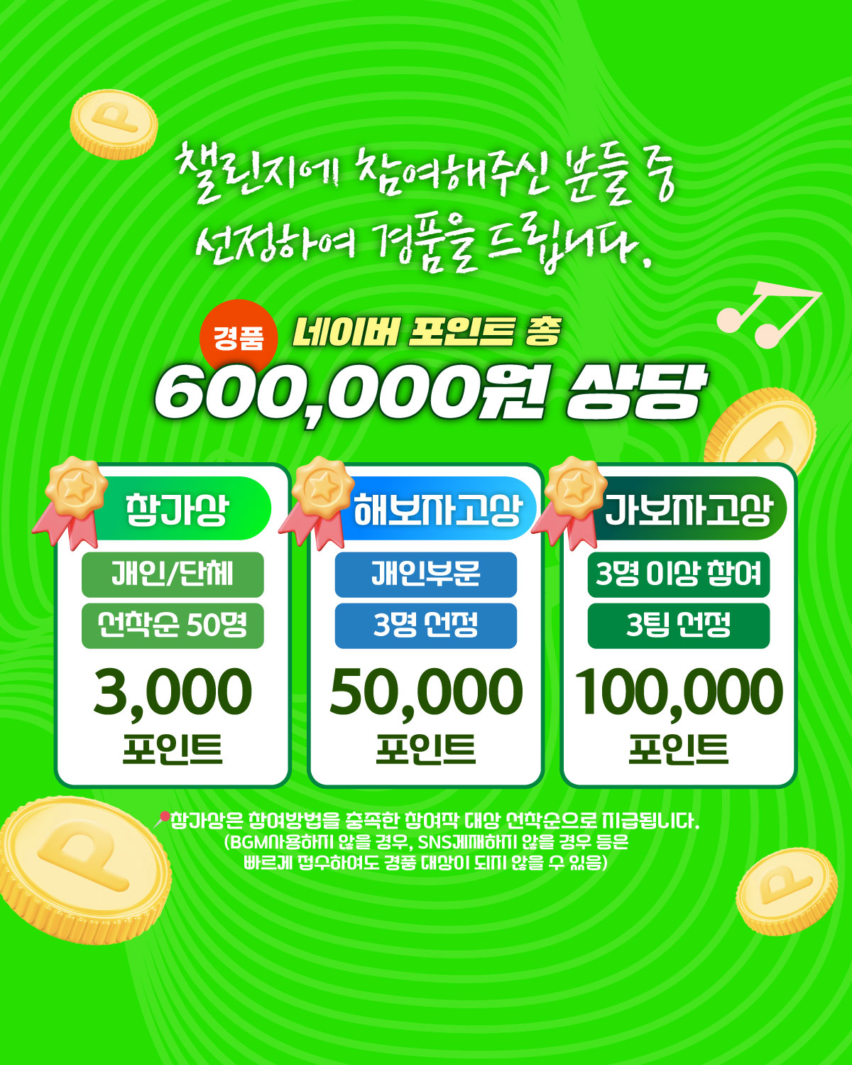 - 개인부문(해보자고상): 50,000포인트/3명,