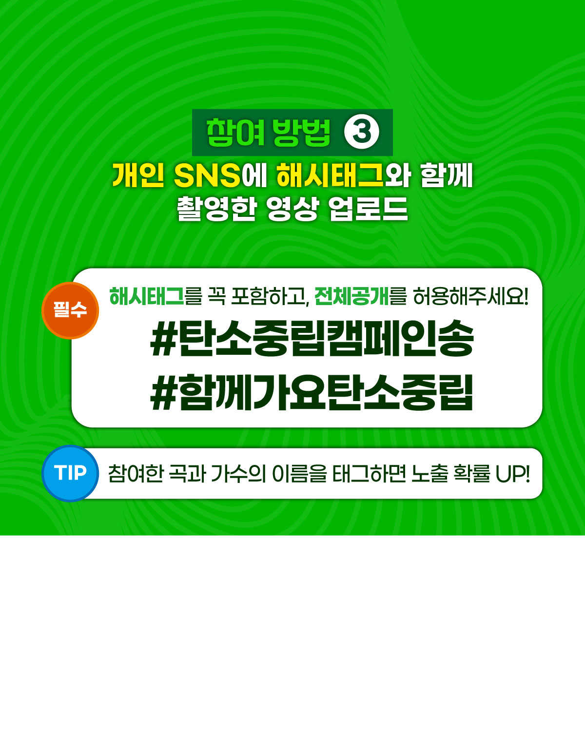 📍업로드 시 필수 해시태그 (#탄소중립캠페인송 #함께가요탄소중립)