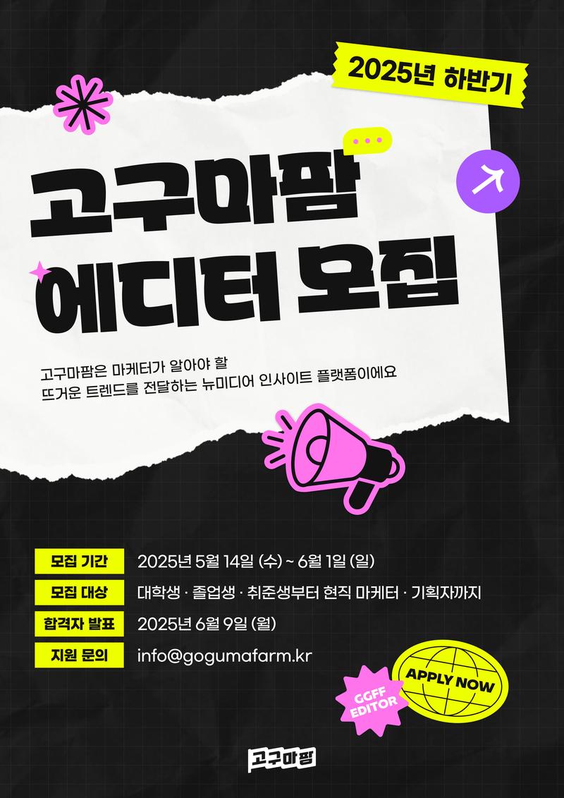 에디터 활동 기간 : 2025. 06. 14 (토)~ 2025. 12. 31 (수) (약 6개월간)
