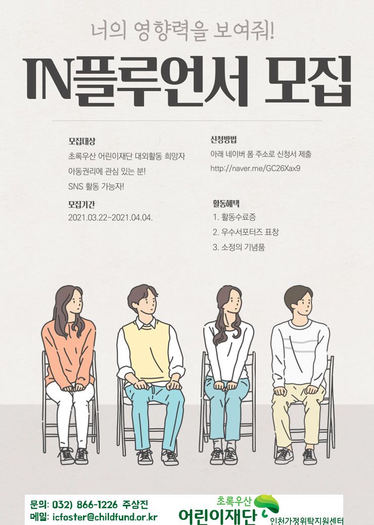 초록우산어린이재단 인천가정위탁지원센터 IN플루언서 온라인 서포터즈 2기 모집