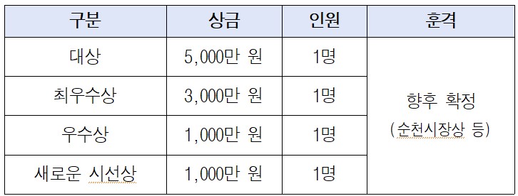 ※ 상장 훈격은 순천시장상, 전라남도지사상 등 추후 지정될 예정이며 별도 공지합니다.