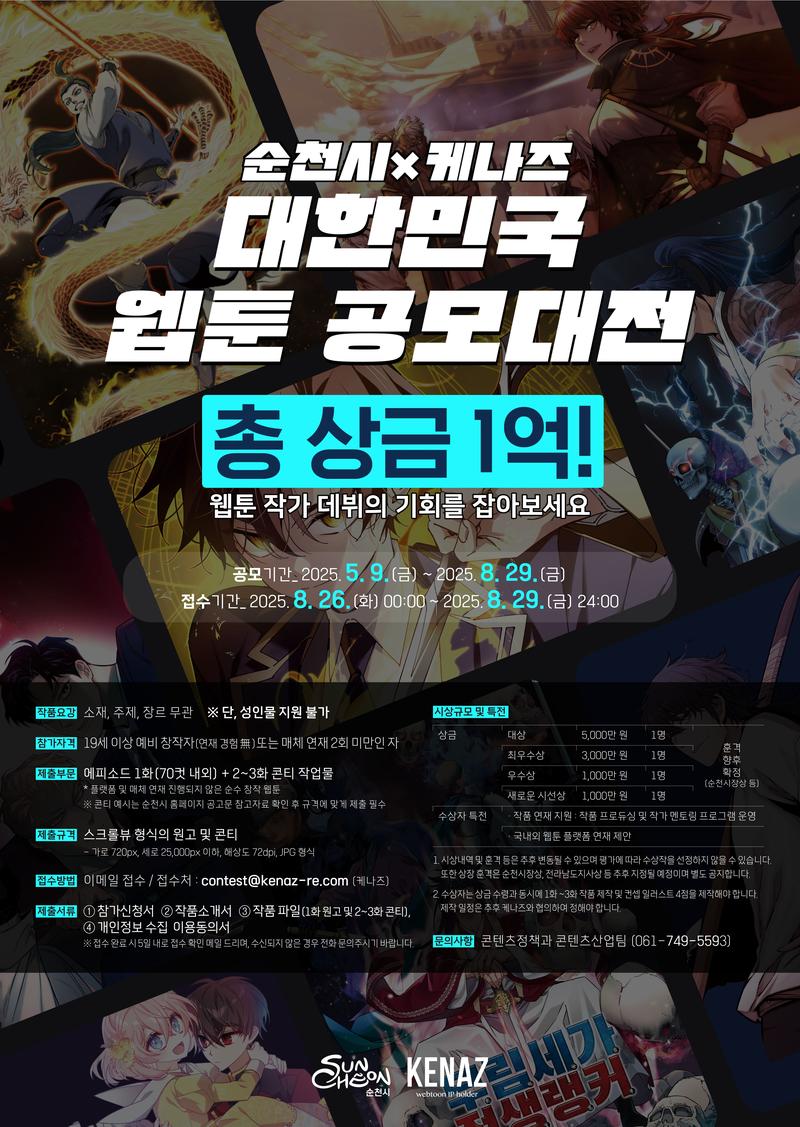 - 수상 작품의 유통 및 사업권은 '케나즈'에 있으며, 순천시에서 홍보 등 비영리 목적으로 사용가능합니다.