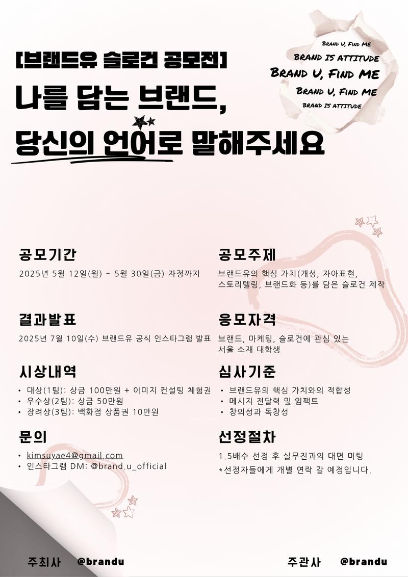 [브랜드유 슬로건 공모전] 나를 담는 브랜드, 당신의 언어로 말해주세요