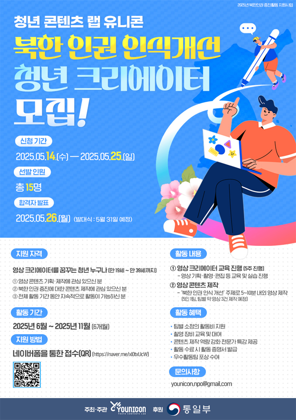 유니콘에서 '북한 인권 인식개선 청년 크리에이터'로 함께 활동하실 분들을 모집합니다!