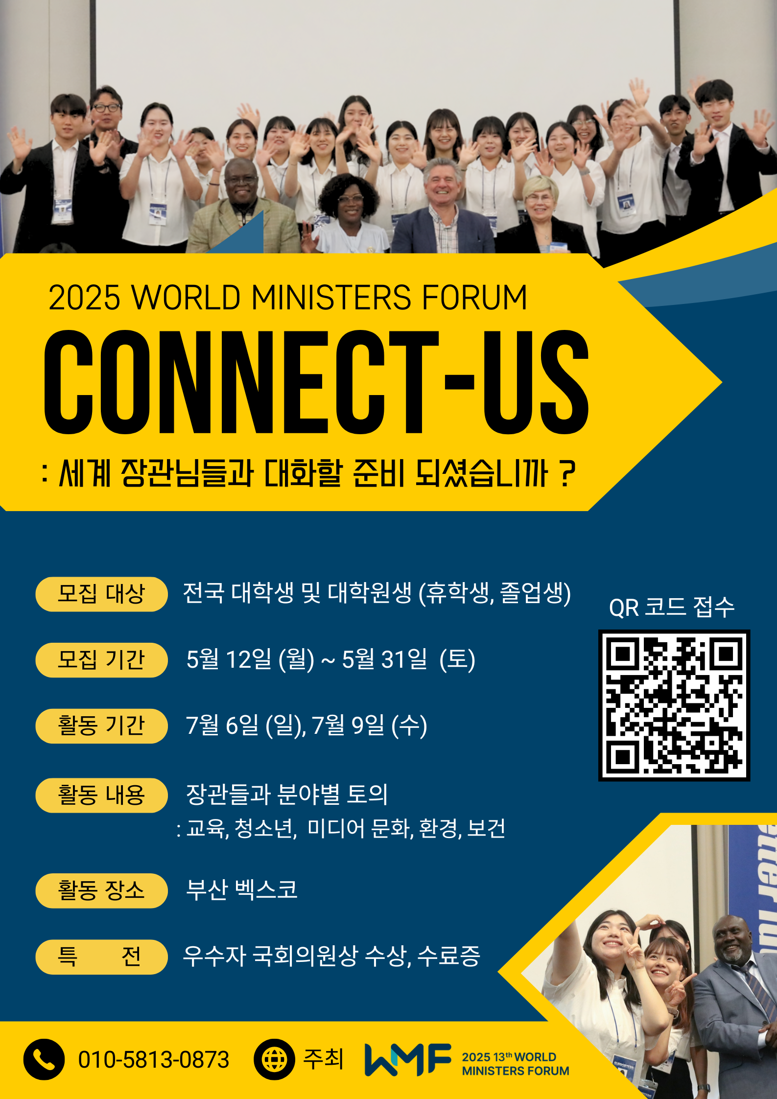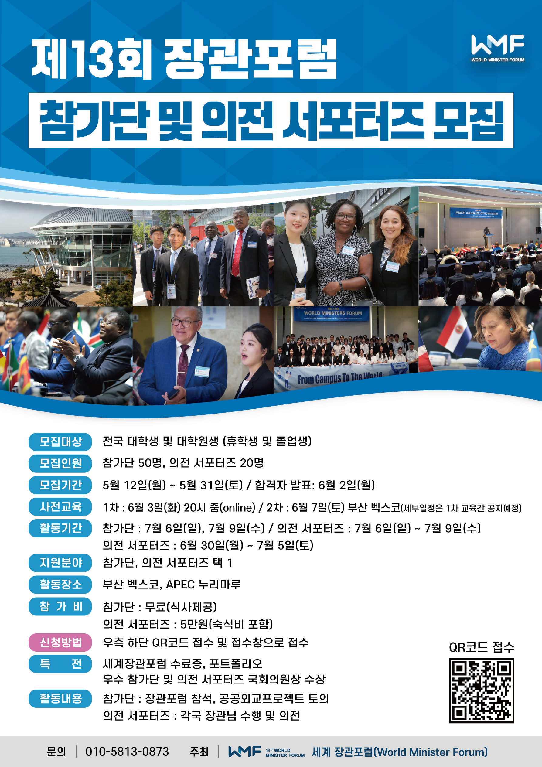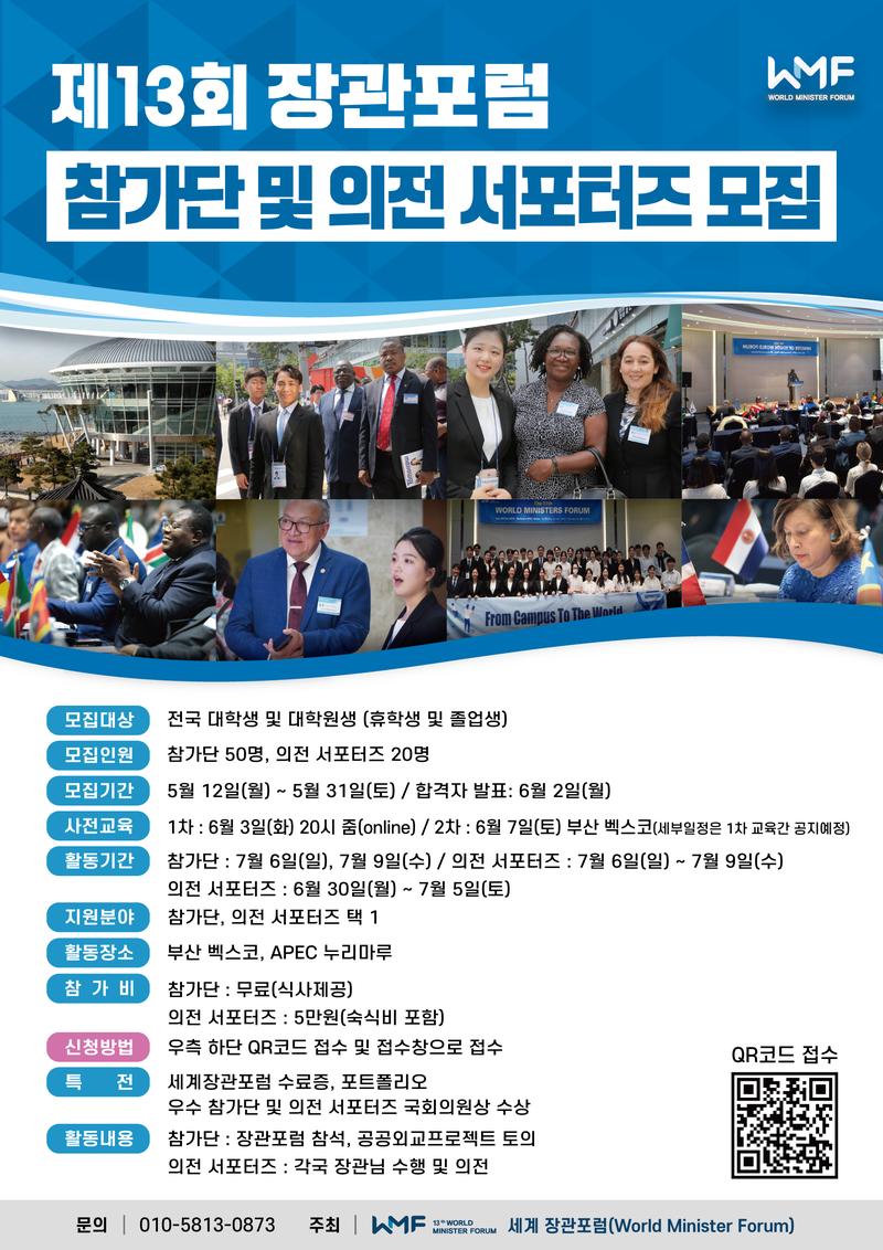 🌎 세계 장관포럼 서포터즈는 전 세계 70여 개국의 장·차관 및 고위급 인사들과의 만남을 통해 지구촌 문제 해결에 대한 국제적 감각을 기르고, 글로벌 리더로 도약하고자 하는 자원봉사자를 모집합니다. ✨
