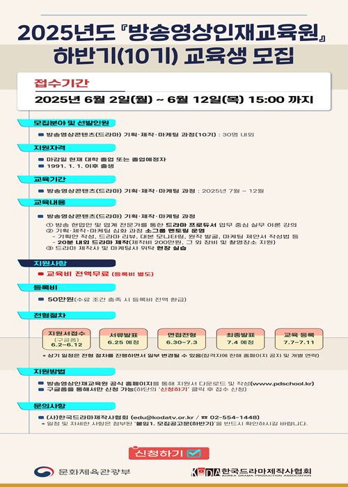 드라마 프로듀서 양성을 위해 『방송영상인재교육원』의 교육생을 모집합니다.