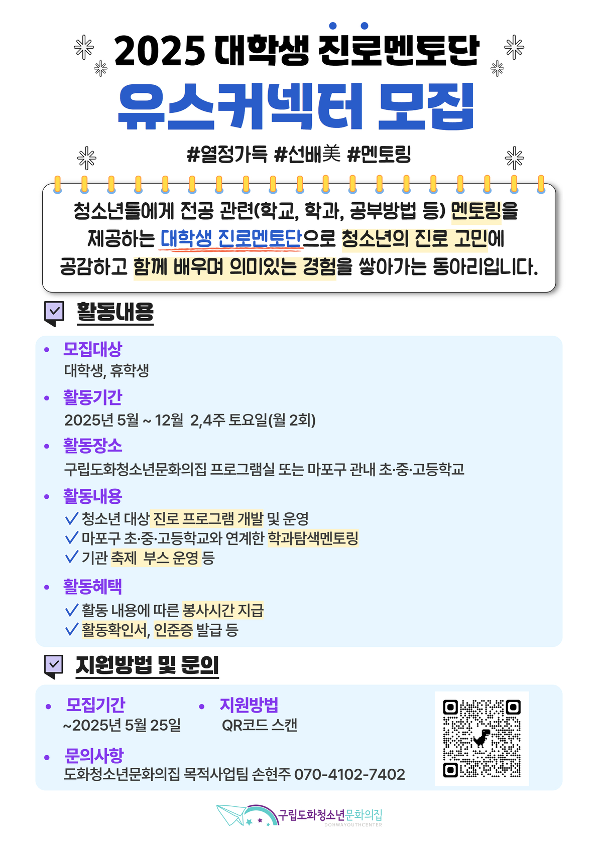 미래를 고민하는 청소년들에게 따뜻한 멘토가 되어줄 대학생 여러분을 찾습니다! 🎯