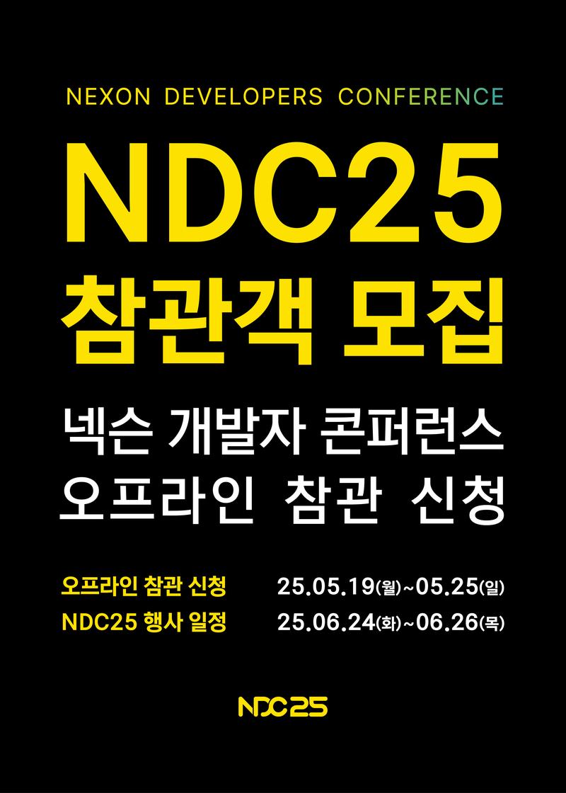 - 5/19(월) 오후 2시 신청 링크가 NDC 홈페이지(https://ndc.nexon.com/offline)에서 공개될 예정입니다.