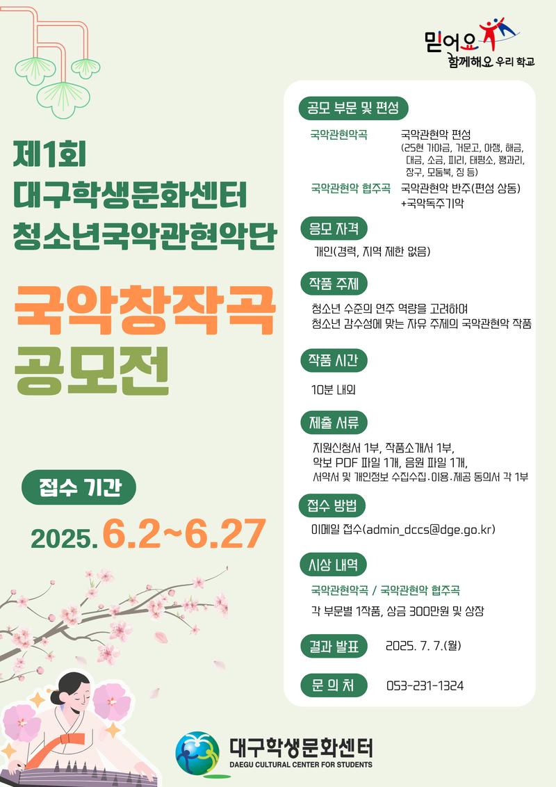 ○ (결과발표) 2025. 7. 7.(월) 10:00, 대구학생문화센터 홈페이지