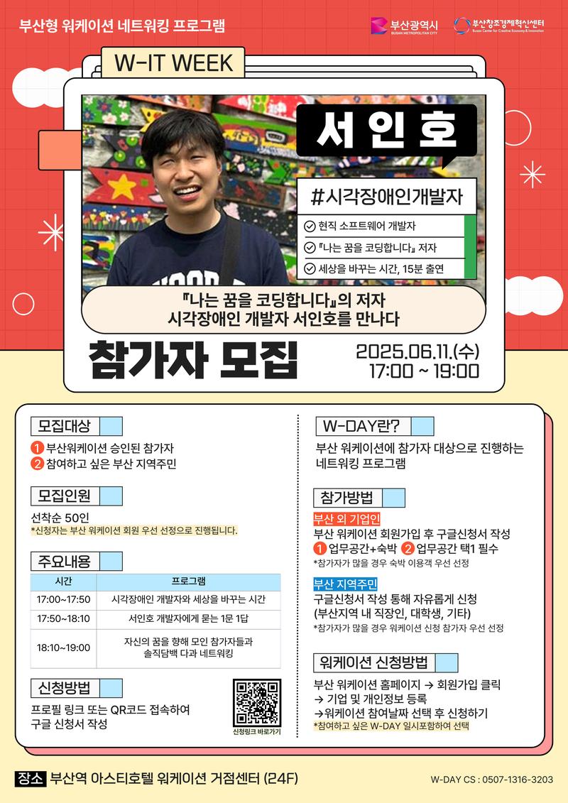 · 주제:『나는 꿈을 코딩합니다』의 저자 시작장애인 개발자 서인호를 만나다