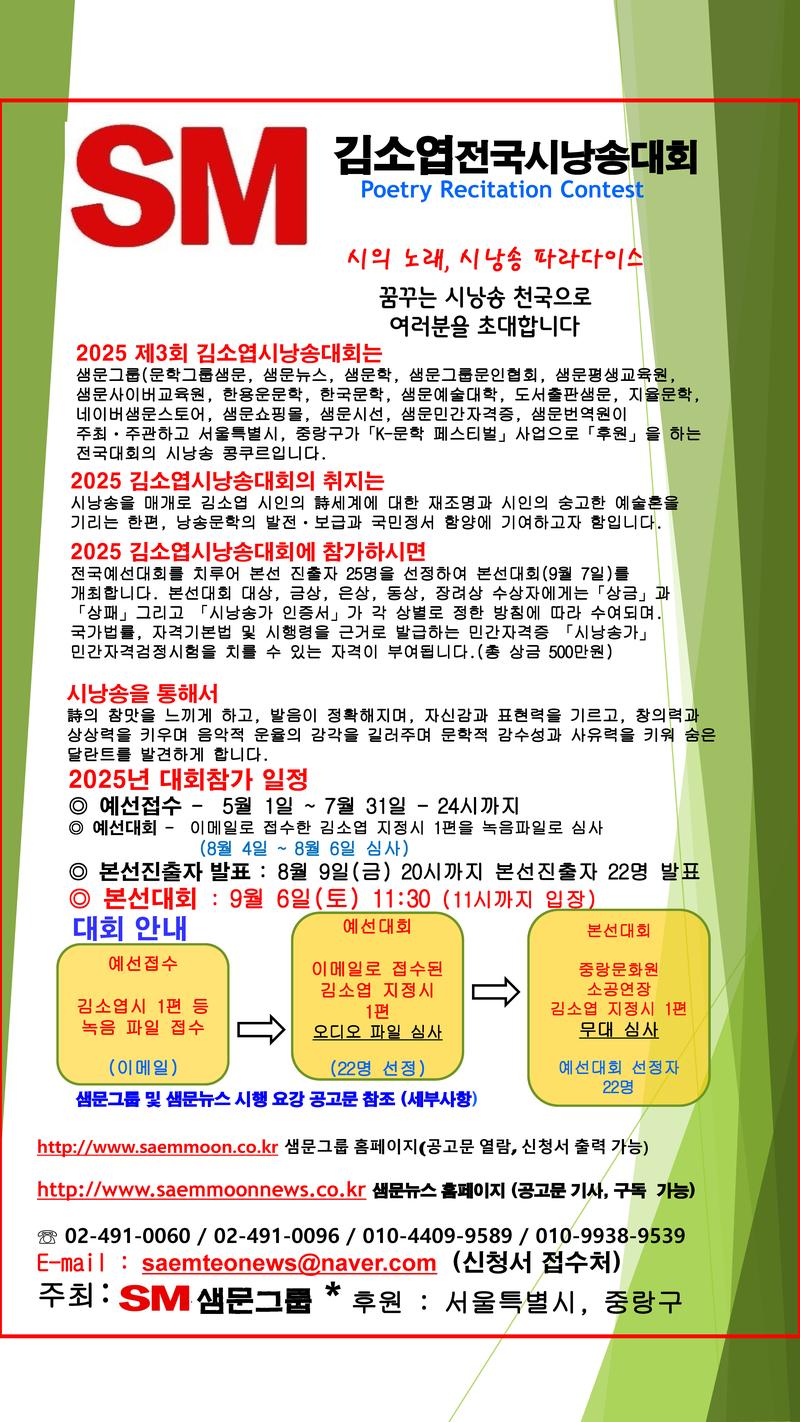 샘문그룹(회장 이정록)에서 매년 시행하는 전국시낭송경연대회입니다.