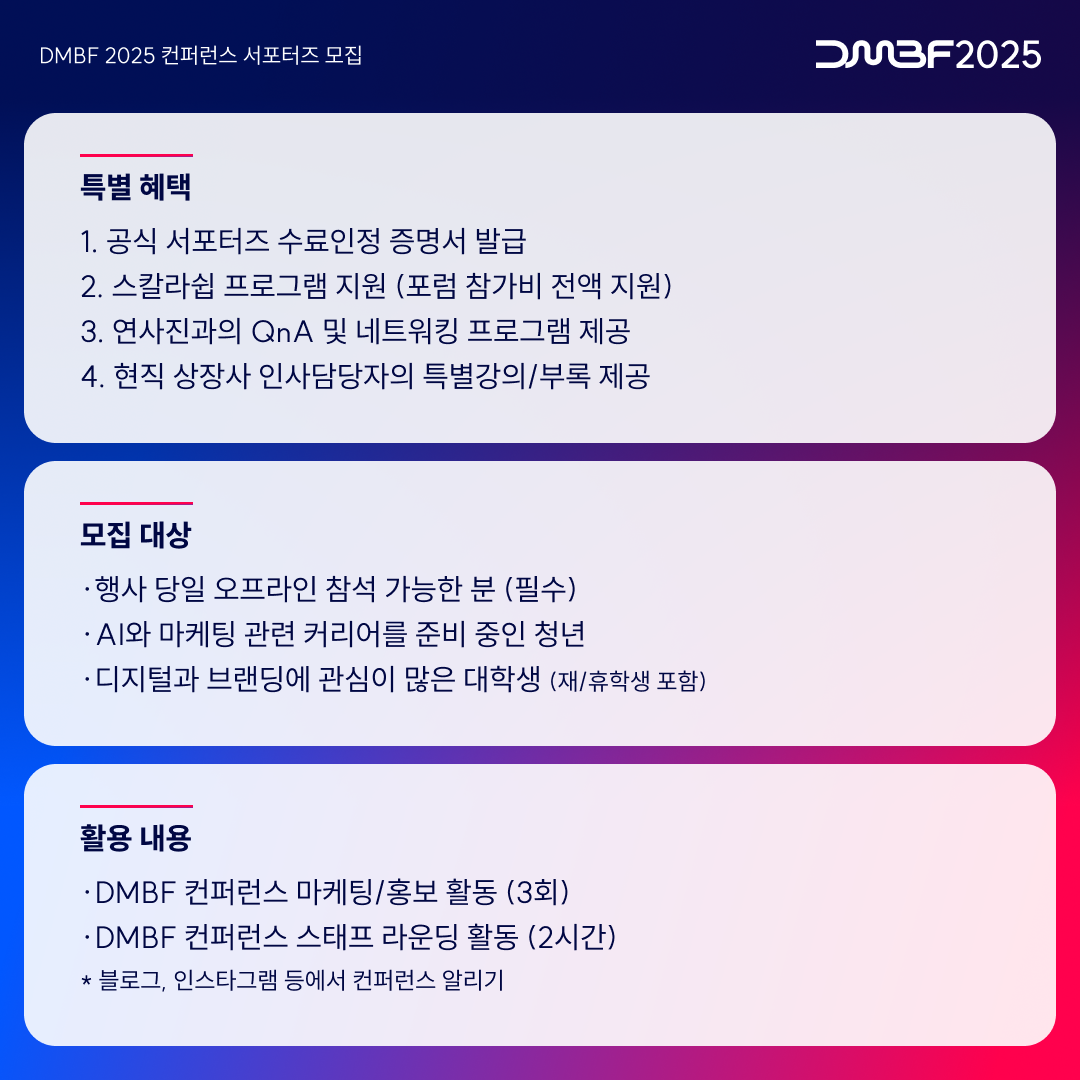 • DMBF 2025 컨퍼런스 컨텐츠 제작 및 홍보실무 (3회)