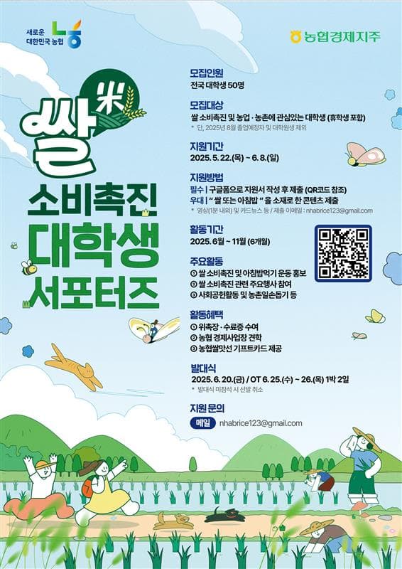 쌀 소비촉진 및 농업·농촌에 관심있는 대학생(휴학생 포함)