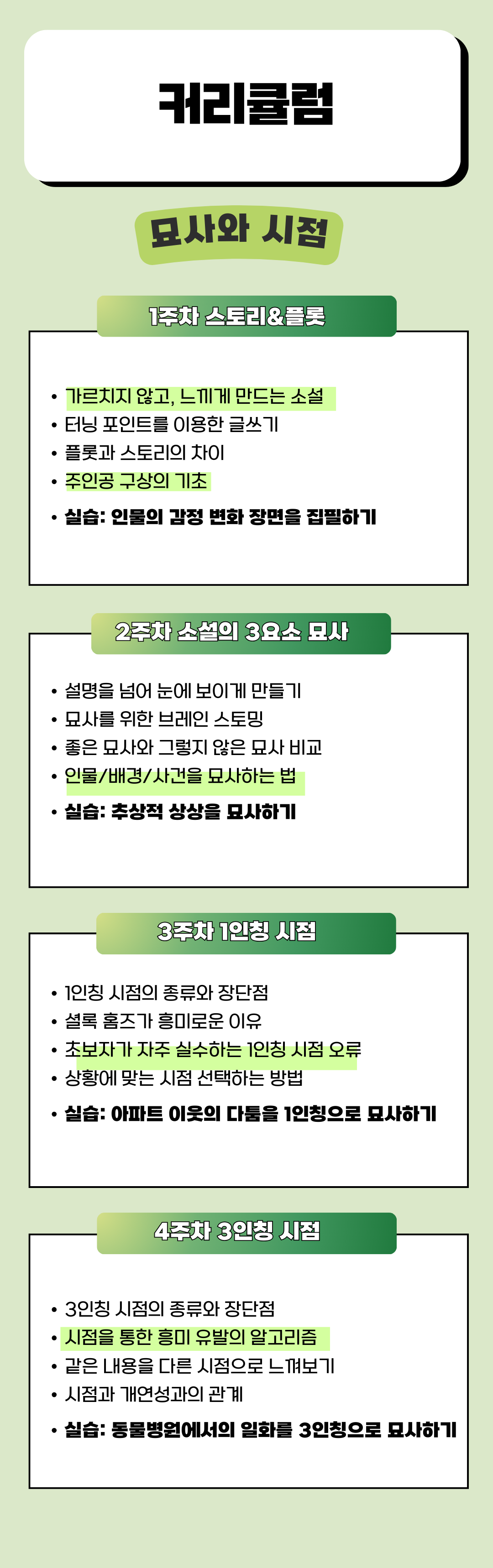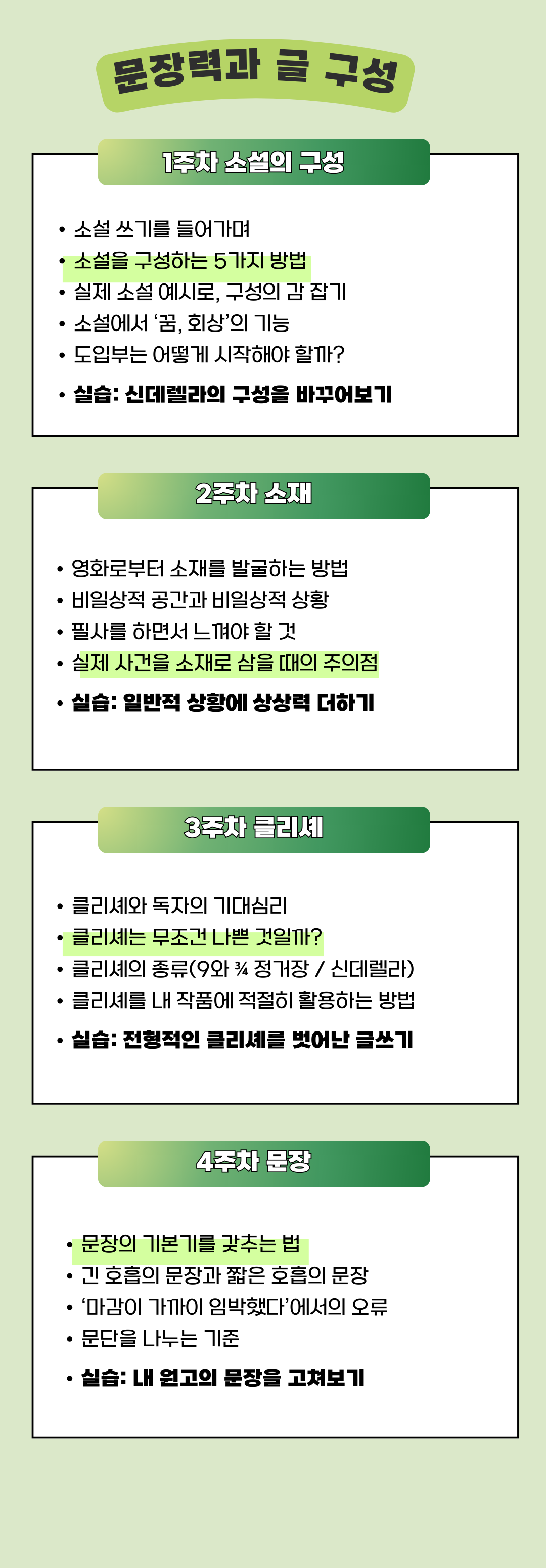 각각 4주 과정으로, 가볍게 시작하실 수 있도록 나누어 구성하였습니다.
