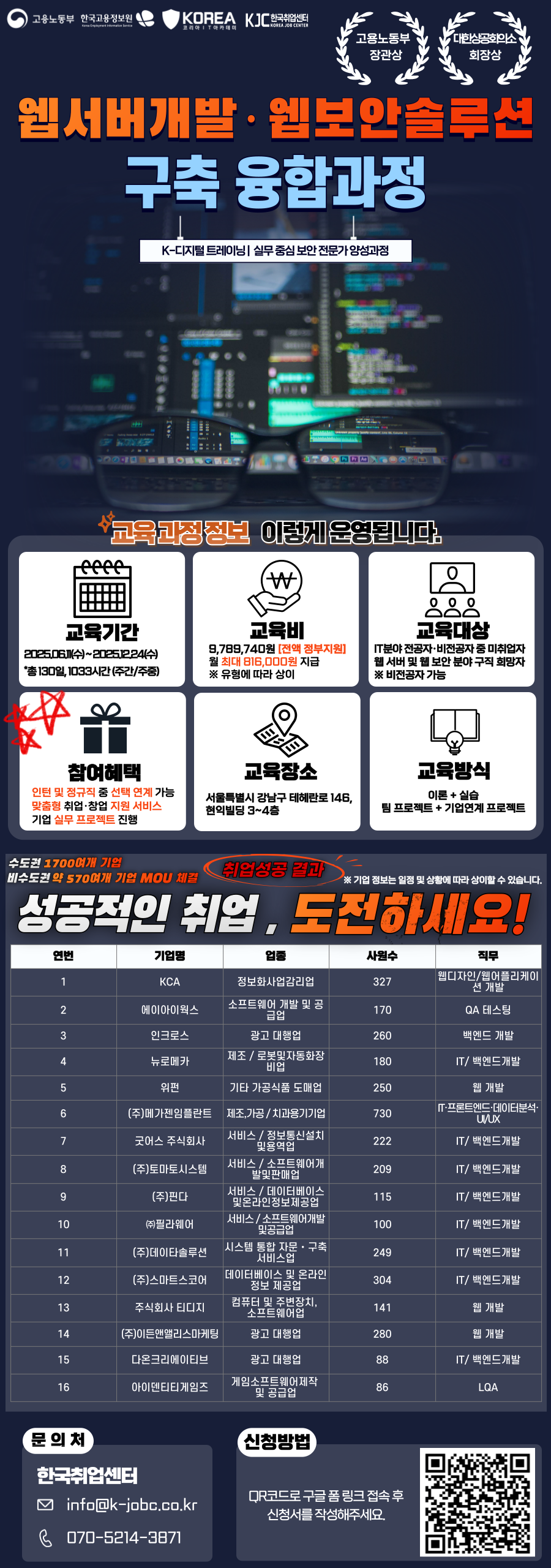 이를 막기 위한 보안 기술을 학습함으로써, 웹 개발 분야와 보안 분야에 필요한 융합 기술을 습득합니다.