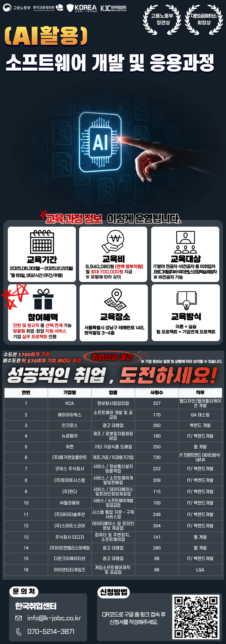 교육기간 : 2025.06.30(월) ~ 2025.12.22(월)