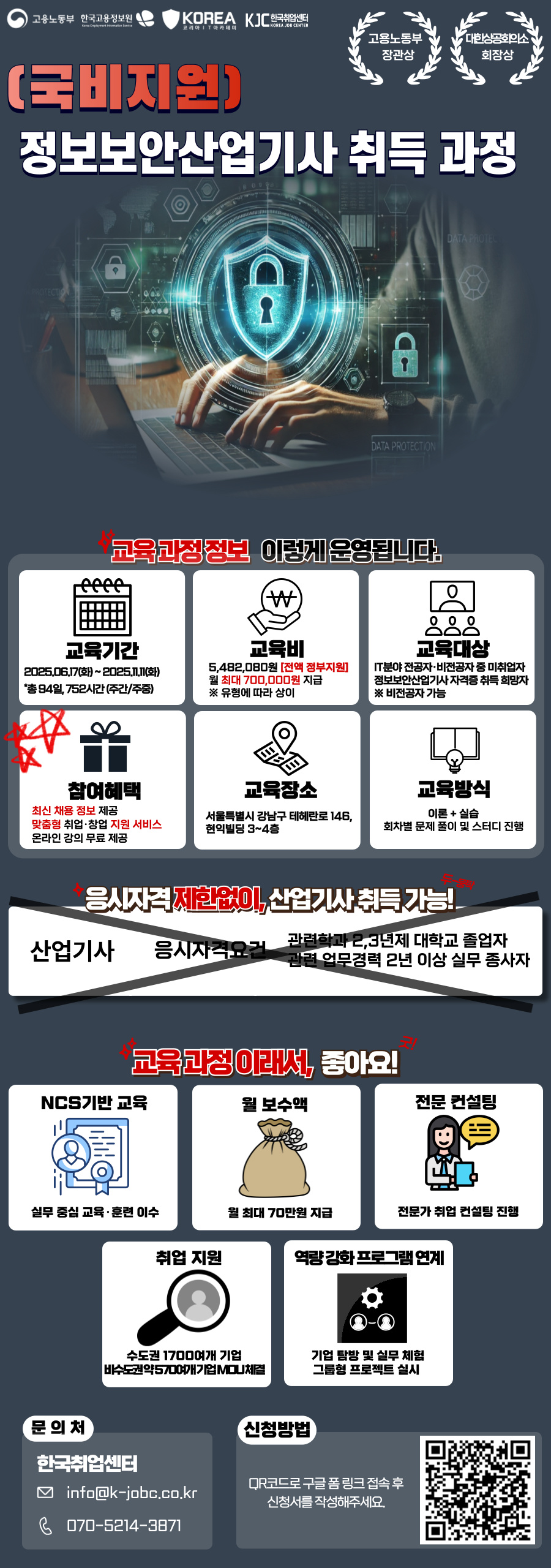 교육내용 : 정보보안에 관려한 시스템과 응용 서버, 네트워크에 대한 전문지식과 운용기술을 갖추고