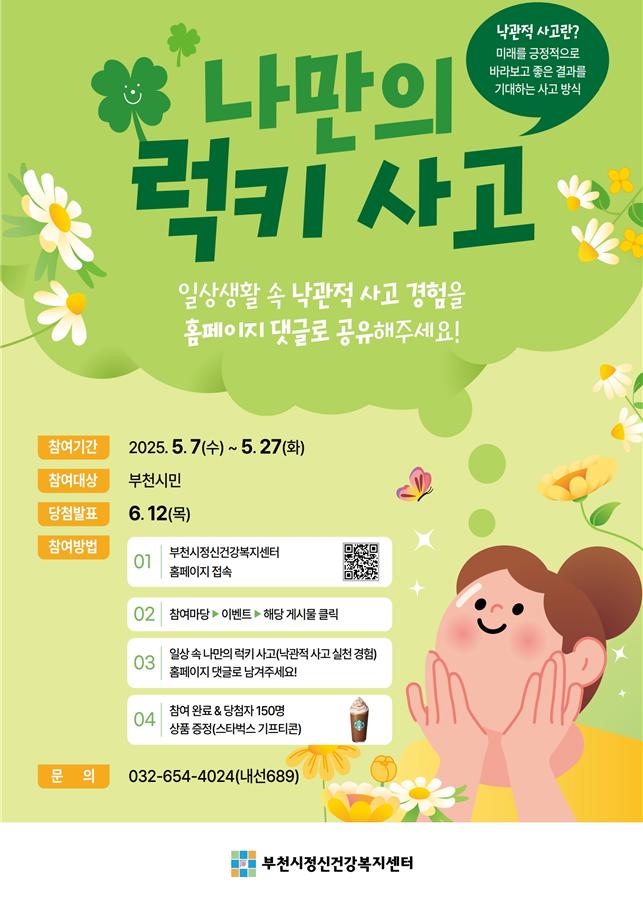 참여방법 : 홈페이지에 공개 댓글로 나의 낙관적 사고(럭키사고)경험을 공유해주세요~!!