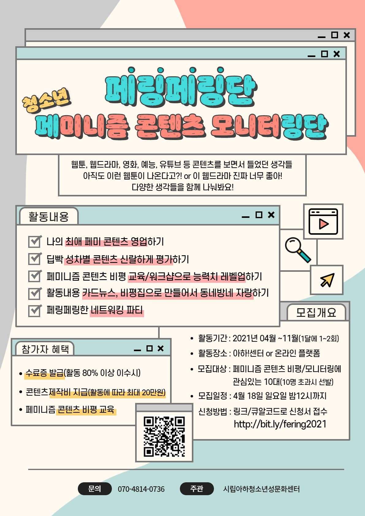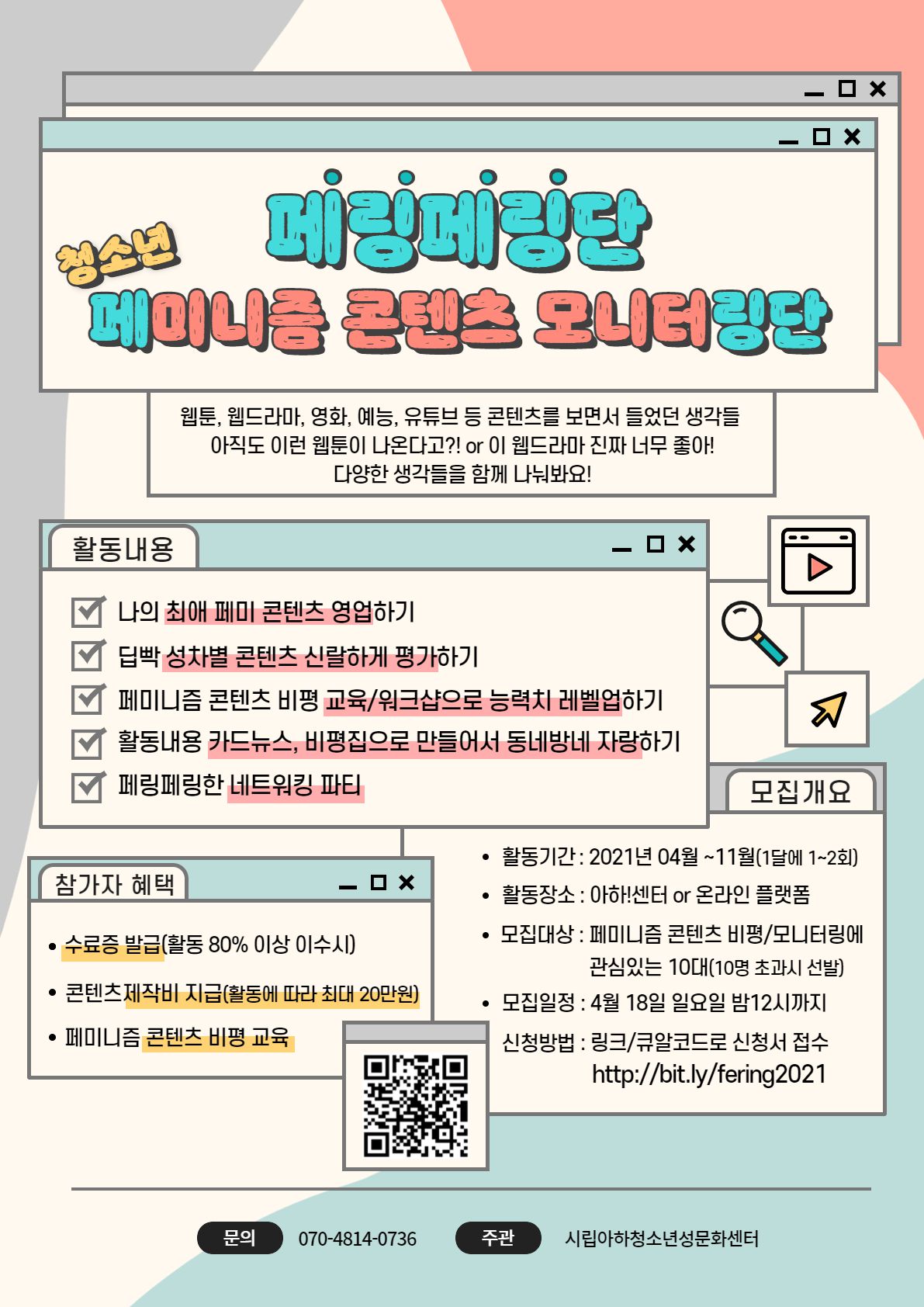- 모집대상: 페미니즘 콘텐츠 비평/모니터링에 관심있는 10대