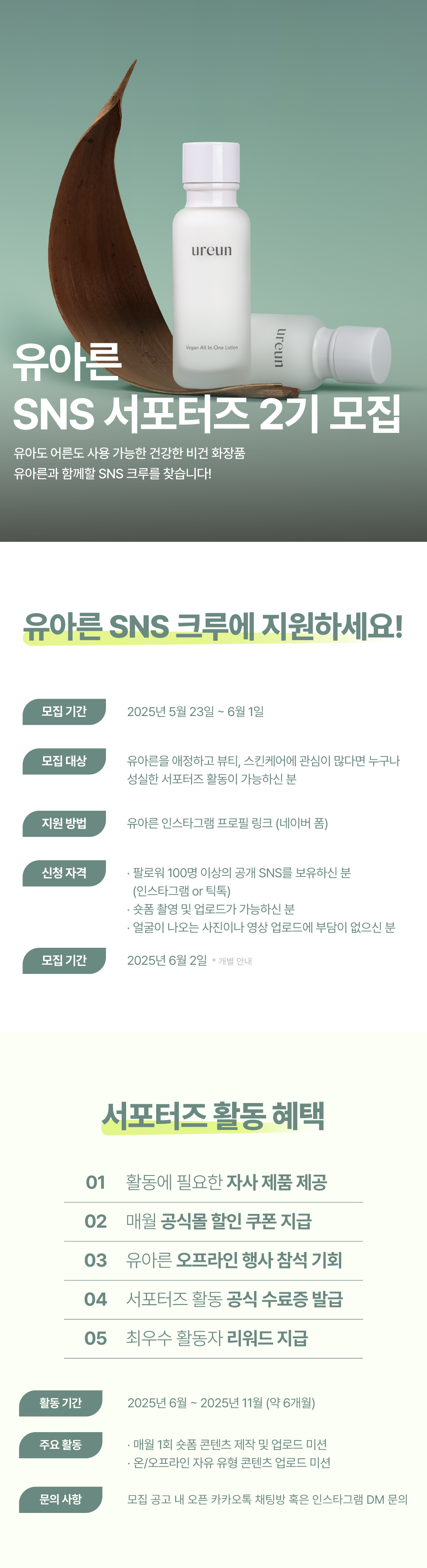비건 스킨케어 브랜드 유아른(Ureun)과 함께할 SNS 서포터즈 2기를 모집합니다!