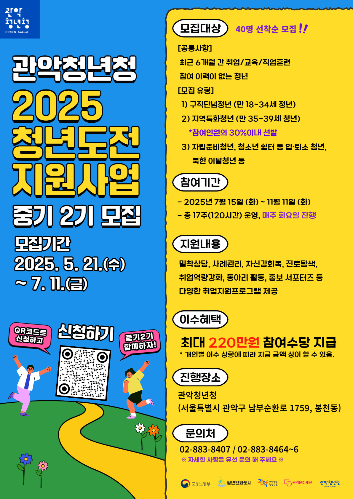 - ☏ 관악청년청 청년문화팀 02-883-8407 / 02-883-8464~6