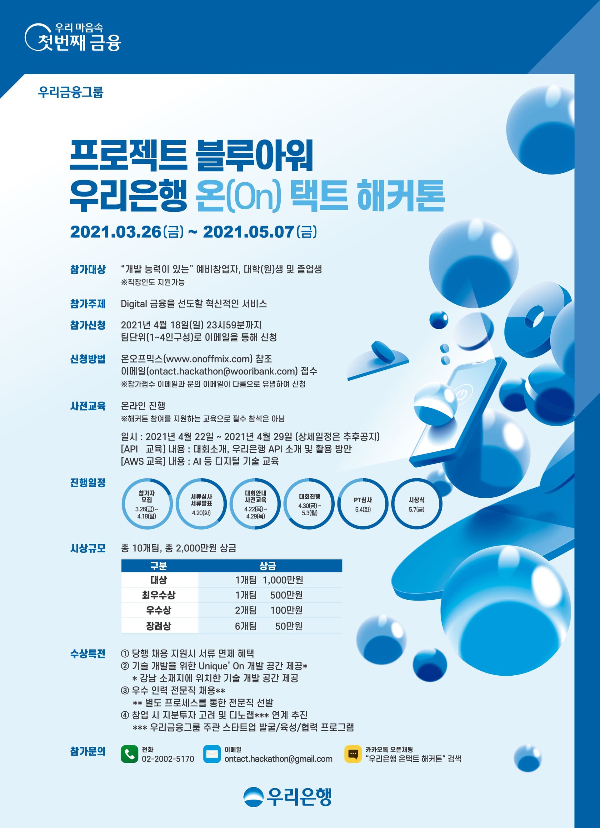 ○ 참가접수 : 이메일 (ontact.hackathon@wooribank.com) 접수