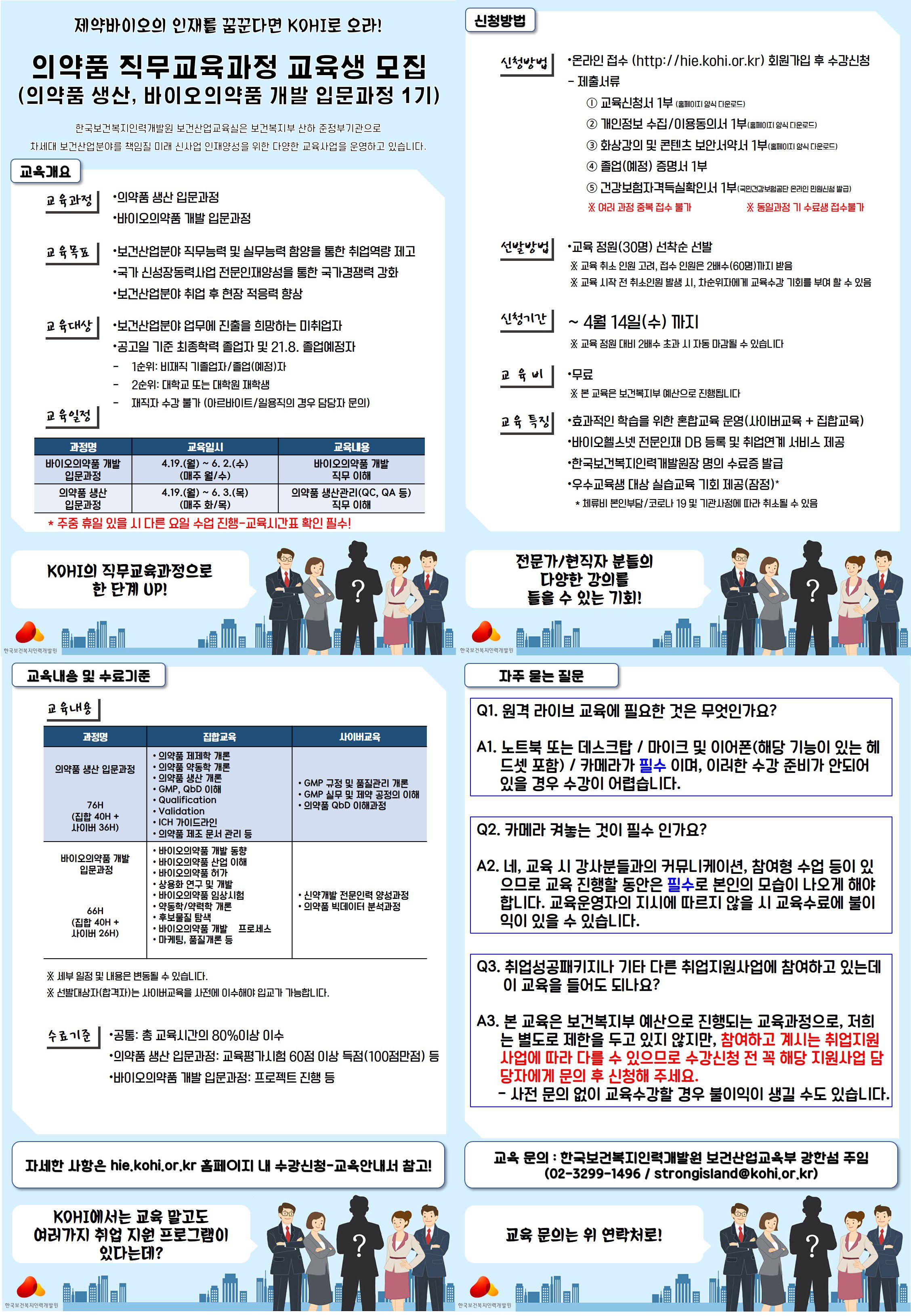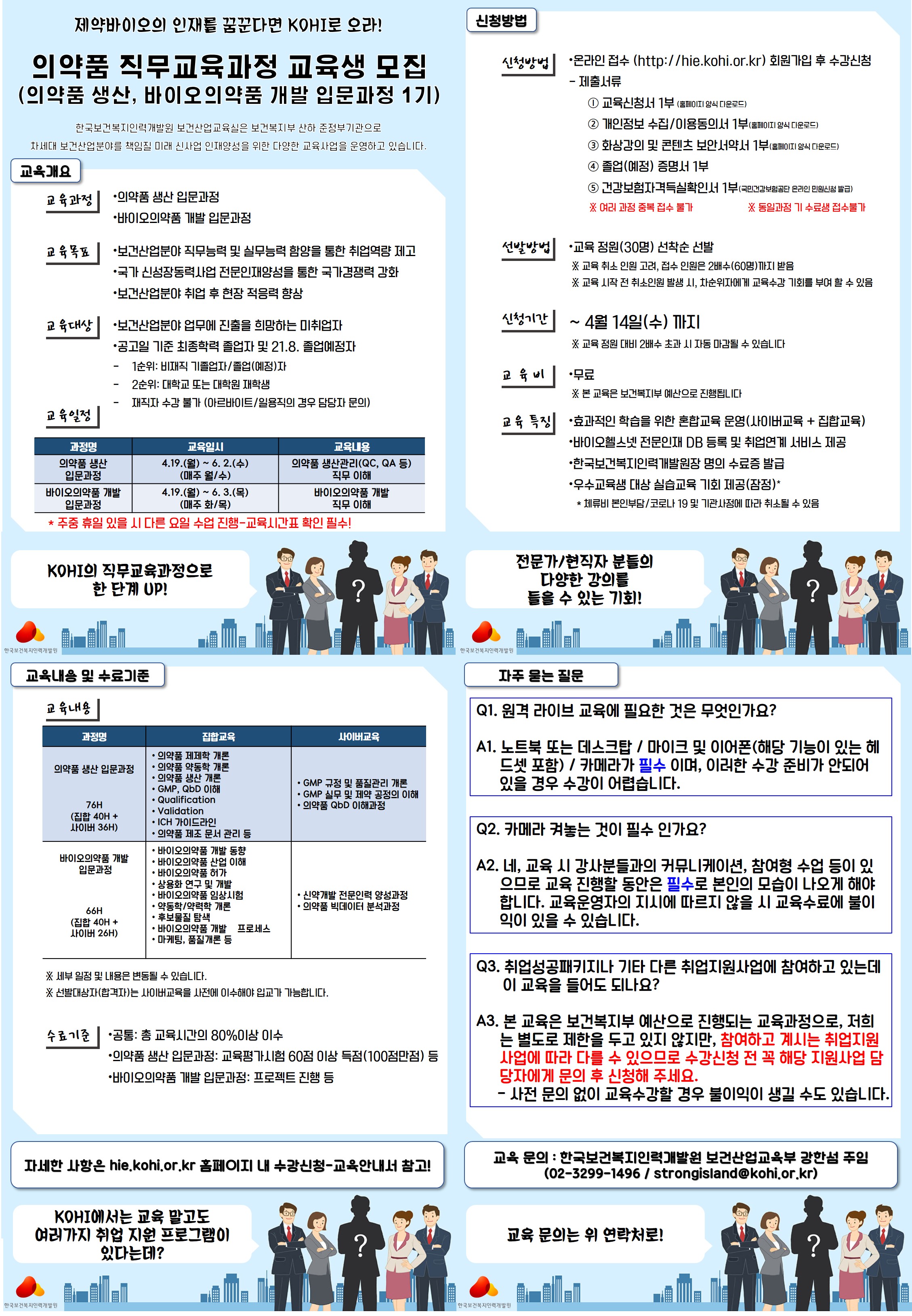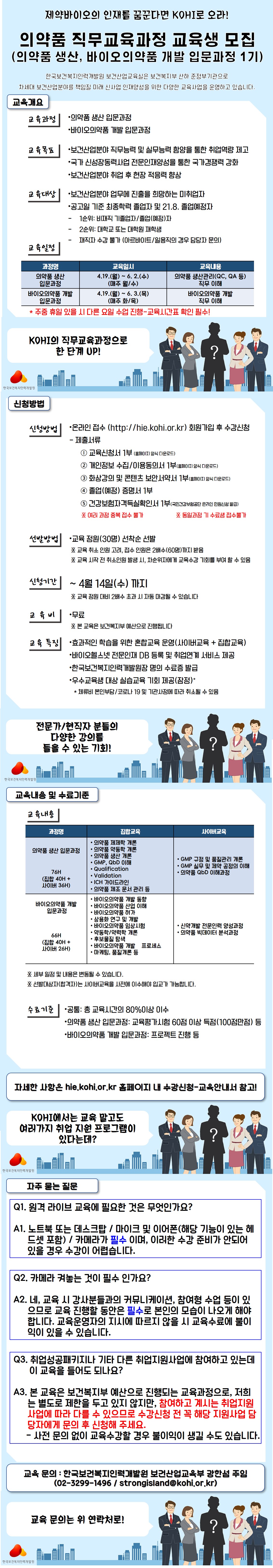 제약바이오산업 분야 취업준비생들을 위한 직무 교육과정 교육생을 모집합니다!