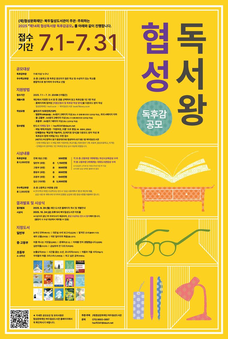2025 『제14회 협성독서왕 독후감공모』를 아래와 같이 진행합니다.