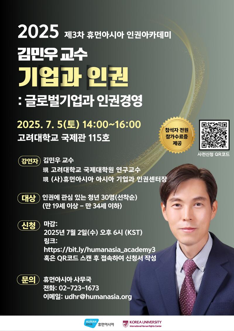 - 본 링크로 신청/접수(접수 완료 후 일주일 이내로 확인 이메일 발송 예정): https://event-us.kr/humanasia/event/104880