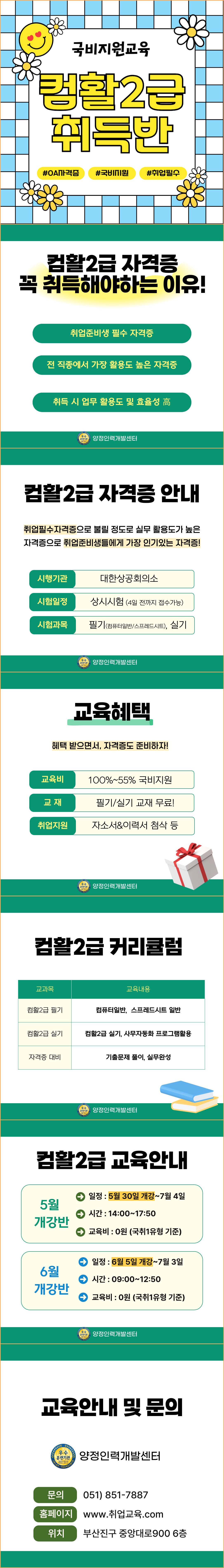 국비지원 컴퓨터활용능력2급 자격증 단기취득반