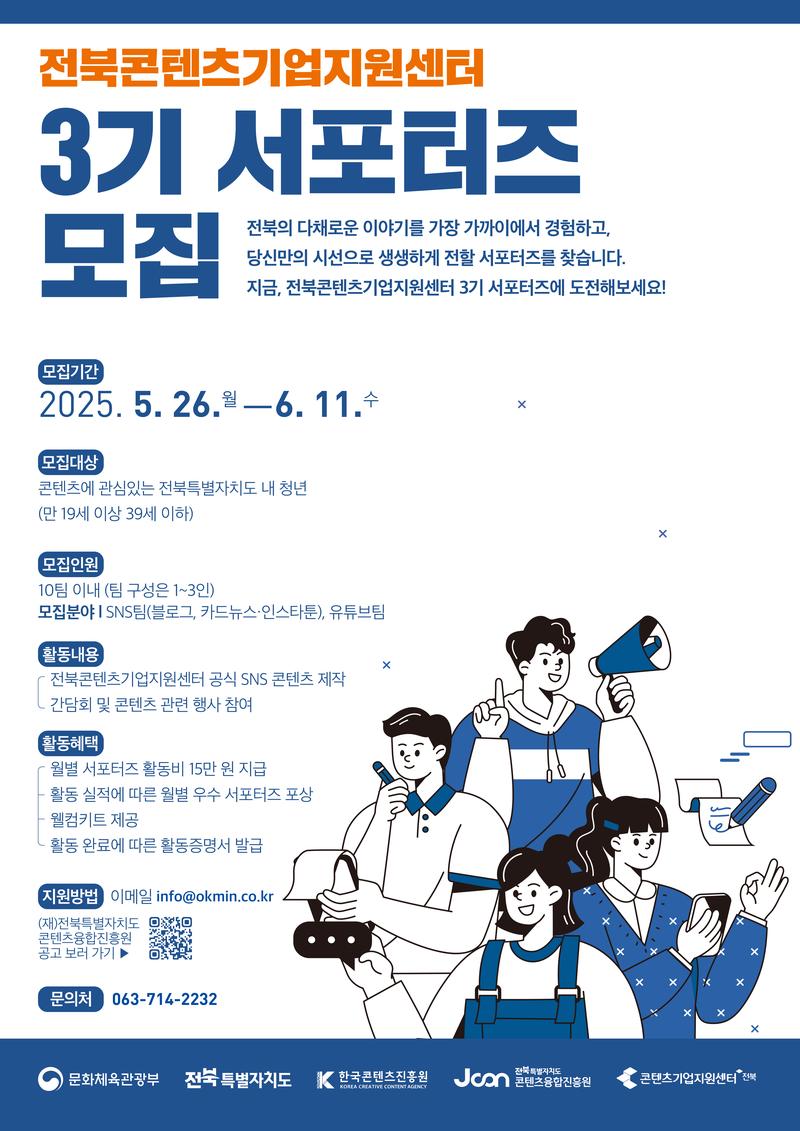 <전북콘텐츠기업지원센터>에서 3기 서포터즈를 모집합니다!
