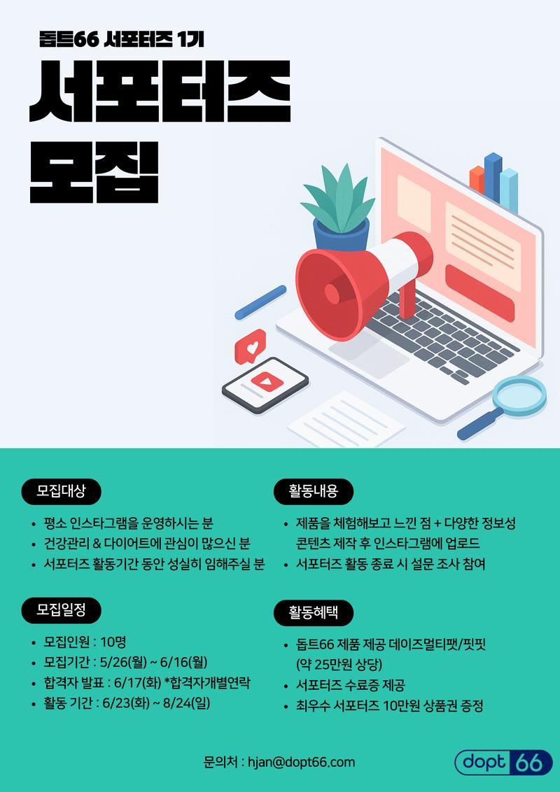 돕트66의 제품을 직접 체험하고, 콘텐츠를 통해 많은 분께 소개해 주실 서포터즈를 모집합니다.
