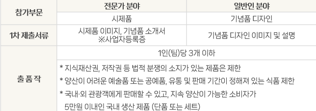 * 동점자 발생 시 <전문가 부문> 상징성-상품성-디자인, <일반인 부문> 상징성-상품성-창의성 순으로