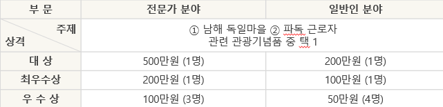 ❍ 공모주제 : ① 남해 독일마을 / ② 파독 근로자