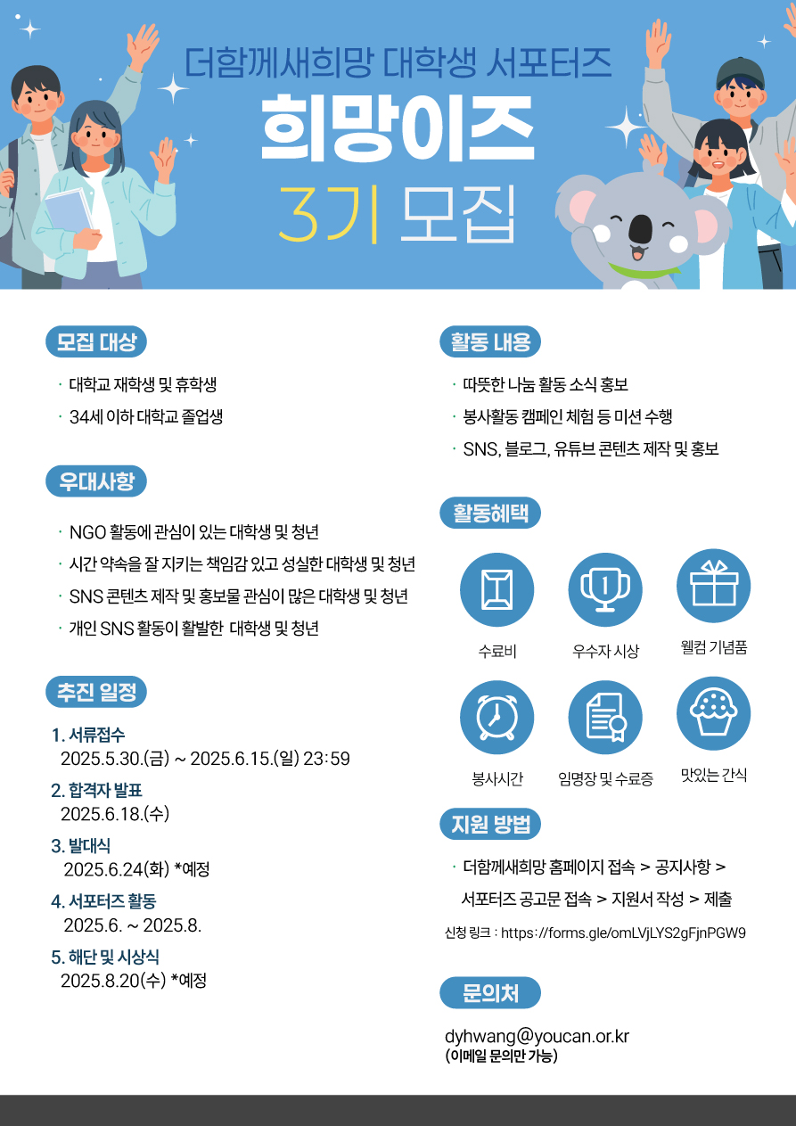 - 시간 약속을 잘 지키는 책임감 있고 성실한 대학생 및 청년