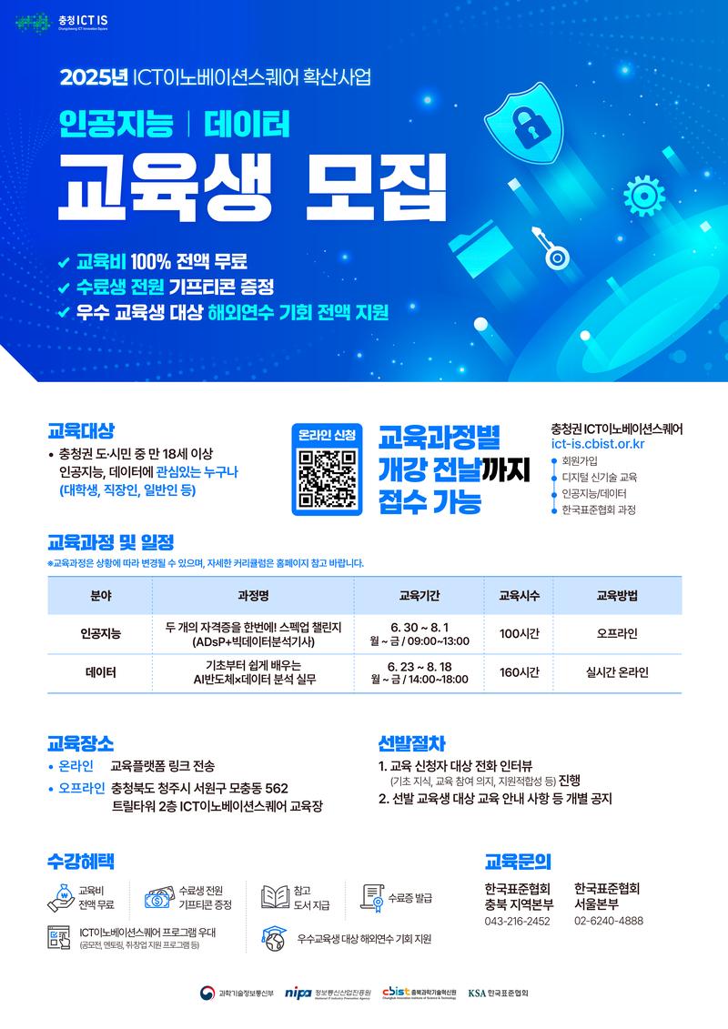 ✅ 충청 ICT이노베이션스퀘어 확산사업 인공지능 / 데이터 교육생 모집