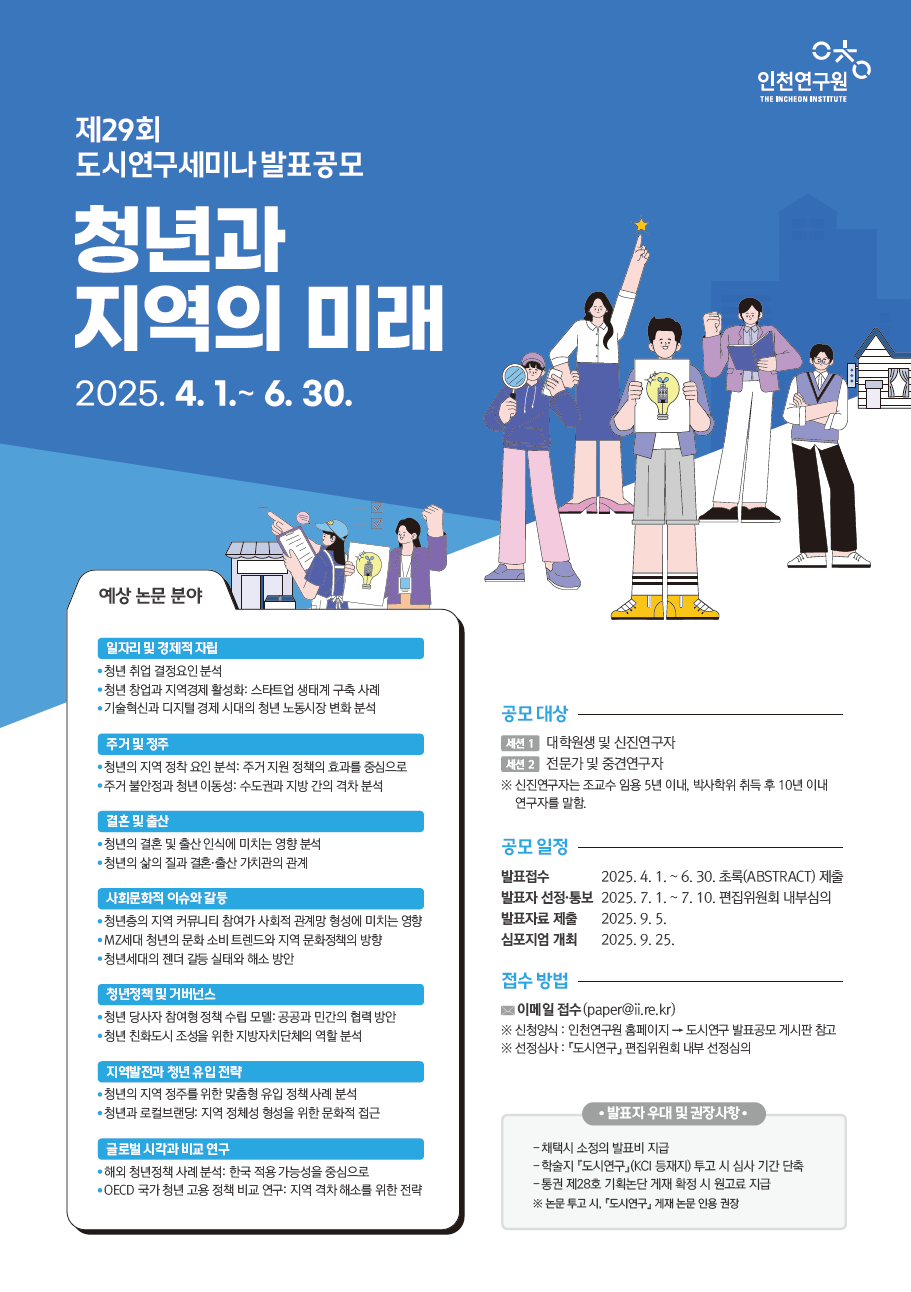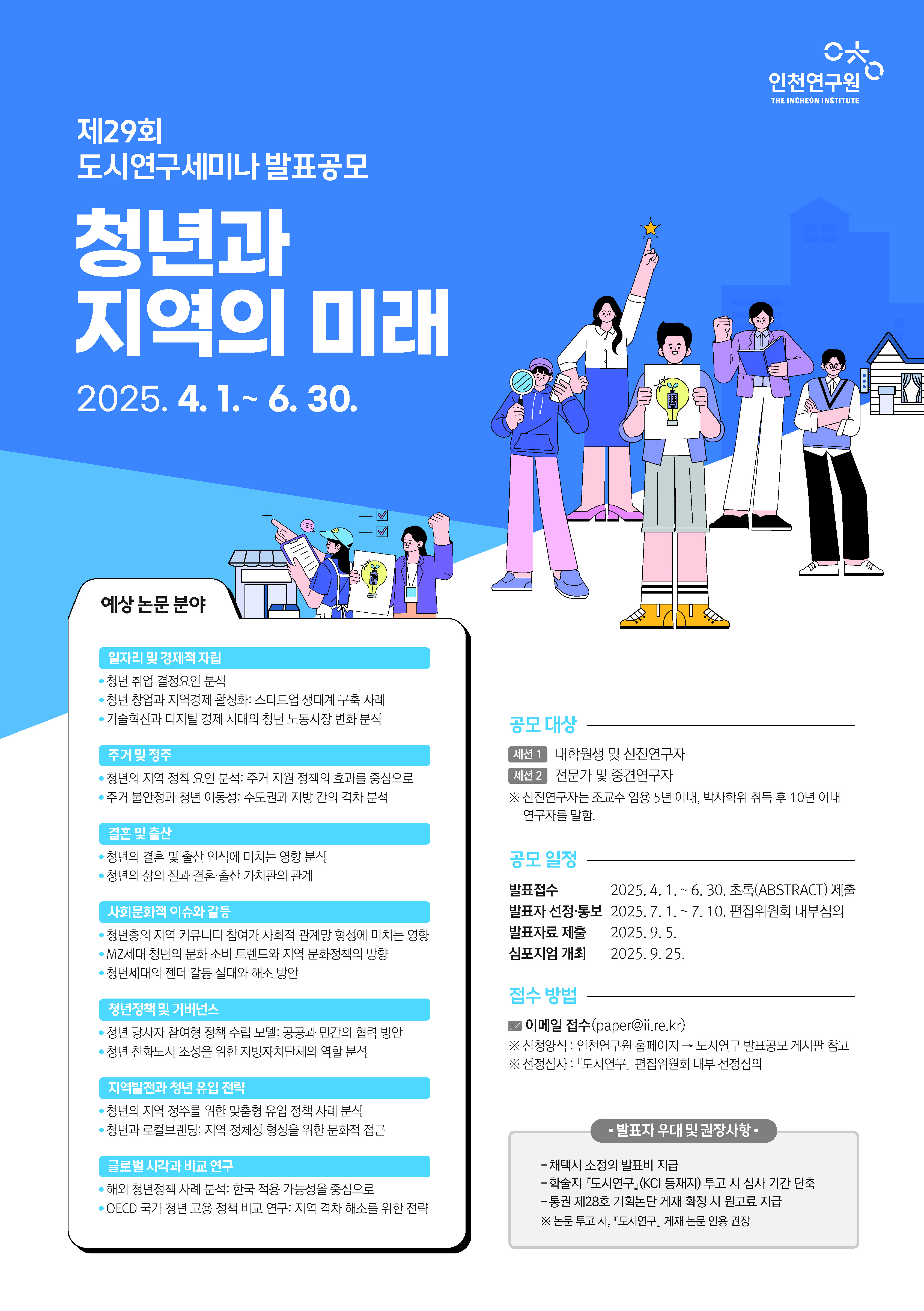 ○ 공모주제 : 청년과 지역의 미래(『도시연구』 통권 제28호 기획논단 주제)