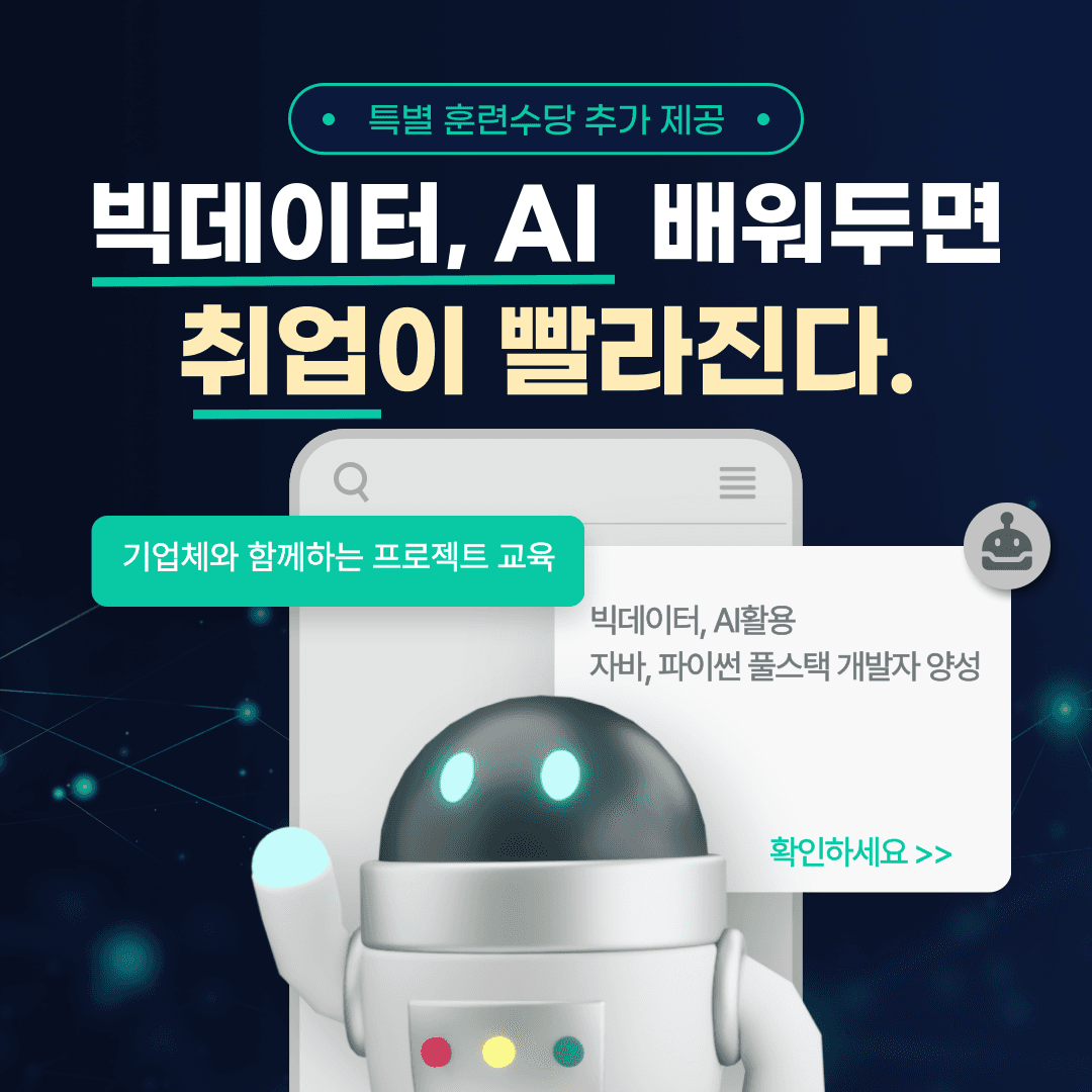 [특별훈련수당 추가 제공/기업체 참여 프로젝트] 빅데이터・AI 활용 개발자 양성