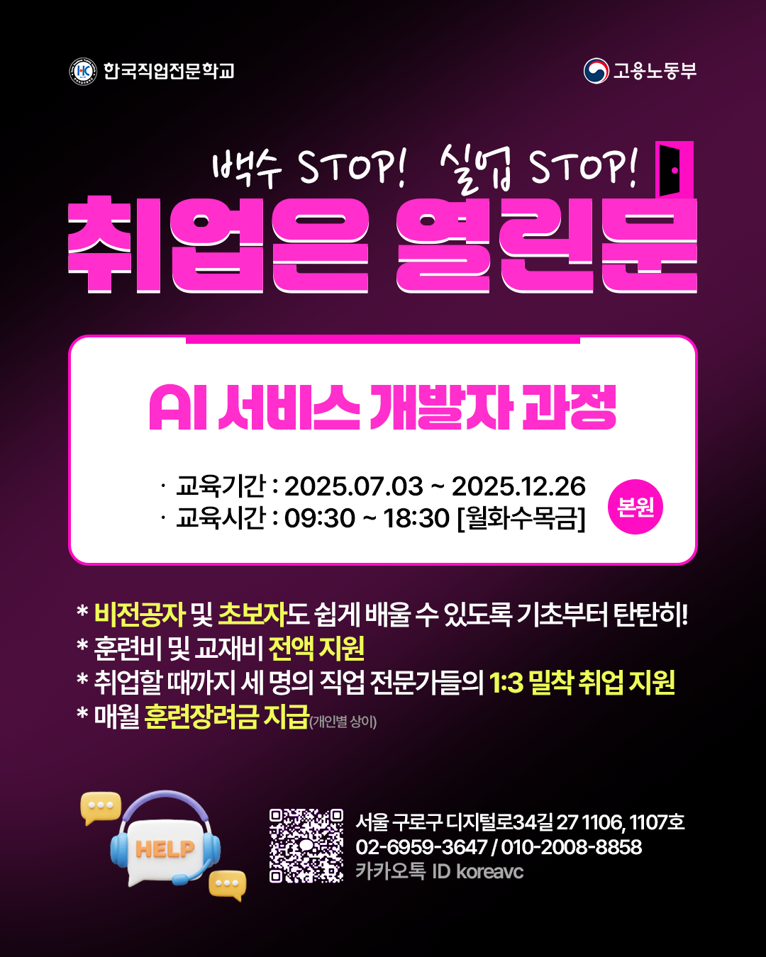- 교육 이수 후에도 6개월까지 취업커리어 지원
