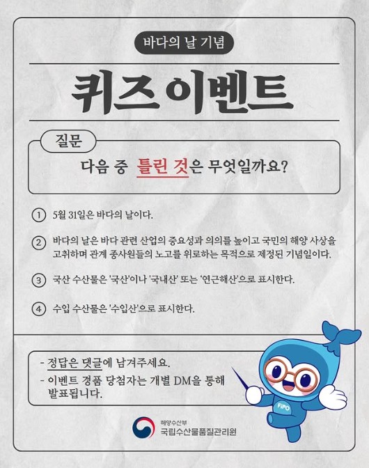 - 본 이벤트는 국립수산물품질관리원 인스타그램 채널을 통해서만 진행됩니다.