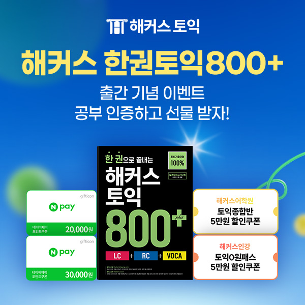해커스 한권토익800+ 신간 교재 출간 기념 공부 인증 이벤트 참여하고 네이버페이 받아가세요!