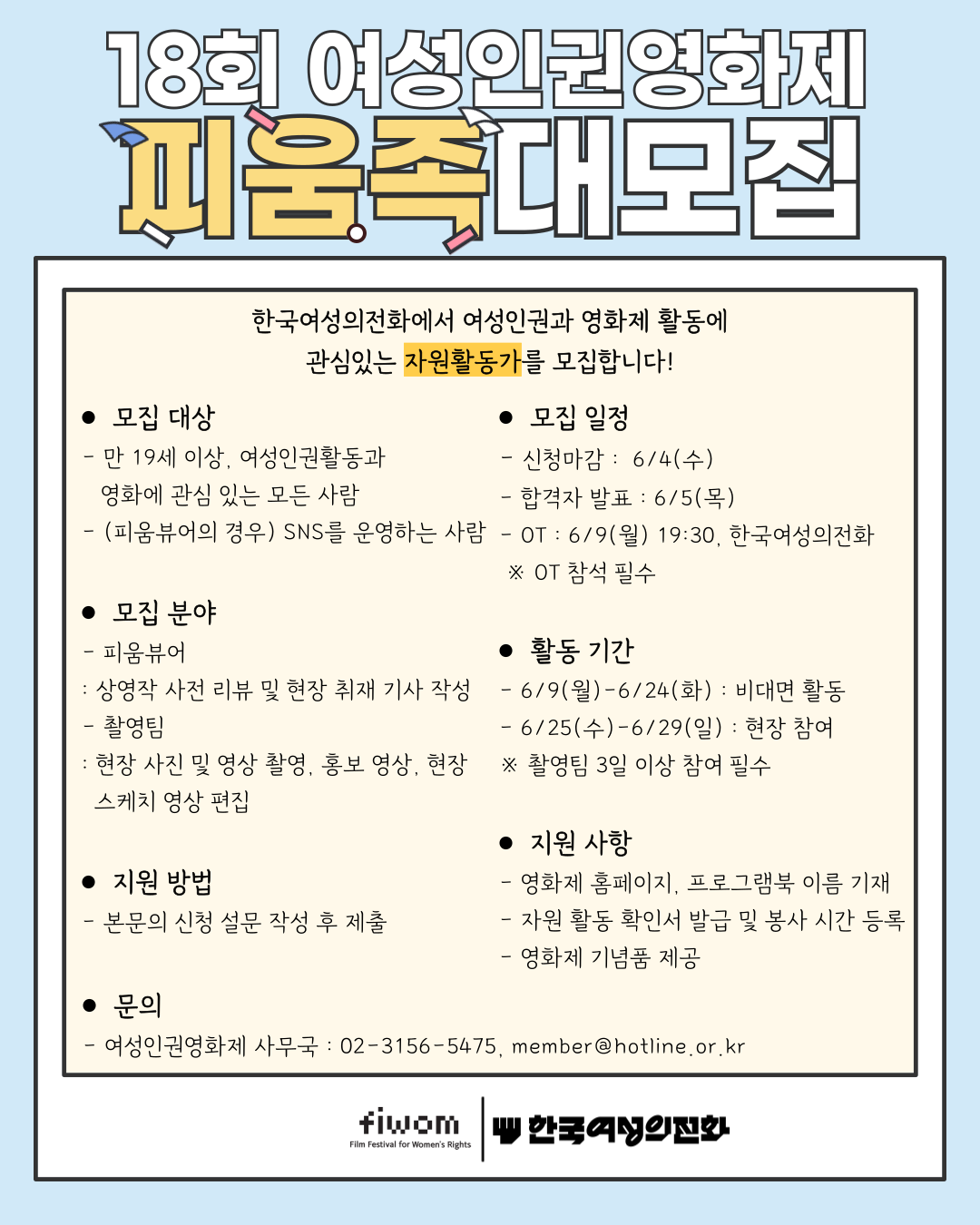 ▪ 여성인권영화제 사무국 (Tel. 02-3156-5475 / E-mail. fiwom@fiwom.org)