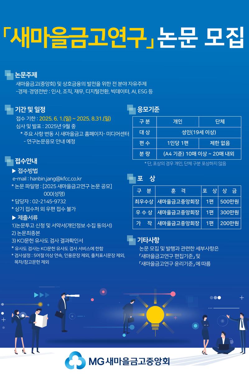 - 2025년 연말 발행될 새마을금고학술지인 '새마을금고연구'에 수록될